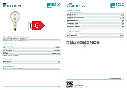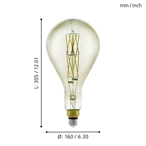 Eglo PS160 - Lampadina a LED E27. dimmerabile, effetto smoky, misura grande, Ø 16 cm, per illuminazione retrò, 8 Watt (equivalente a 45 Watt), 600 lm, E27. LED bianco caldo, 3000 K, lampadina Edison