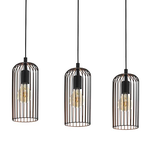 Eglo Roccamena Lampada a Sospensione a 3 Luci, Stile Vintage, Attacco E27. in Acciaio, Nero, Rame