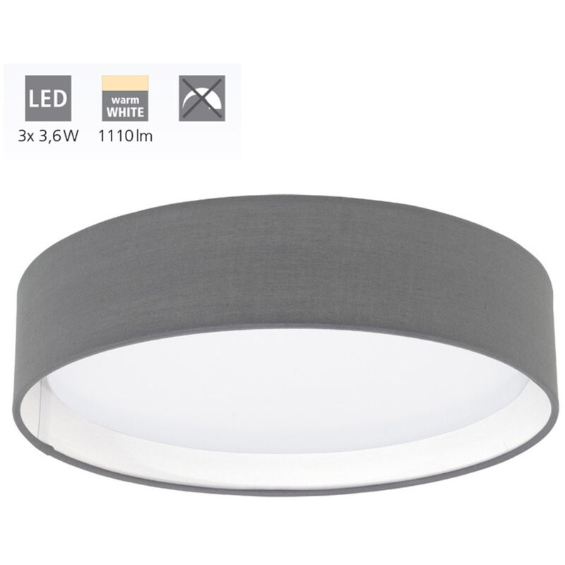 Eglo Pasteri - Plafoniera LED a filo con paralume in tessuto grigio e diffusore bianco | Finitura: bianco | Materiale: acciaio, plastica, tessuto | Classificazione IP: IP20 | Altezza (cm): 9 | Diametro (cm): 32 | Tipo di lampada: LED | Kelvin: 3000 | Lumen: 950 | Potenza (max): 11W | Peso (kg): 1.149