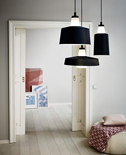 Questa lampada a sospensione è realizzata in acciaio di colore nero, bianco