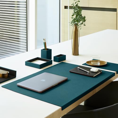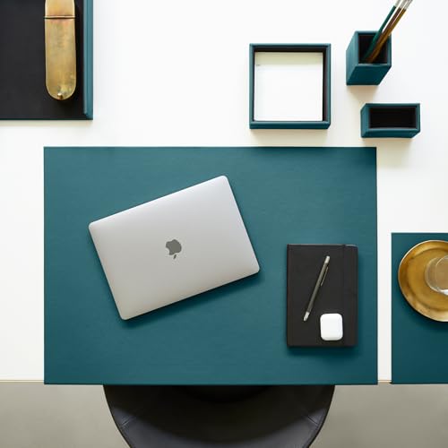 Eglooh - Atena - Portapenne da Scrivania Ufficio in Vera Pelle Blu Petrolio - Design Quadrato e Finiture Artigianali - cm 7 x 7 x H.9,5 - Interamente Made in Italy