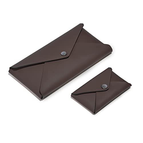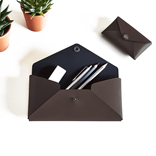 Eglooh - Helios - Set Porta Biglietti da Visita + Astuccio Portapenne in Cuoio Marrone Scuro - Porta Carte di Credito - Chiusura con Bottoni Bruniti - Interamente Prodotto in Italia