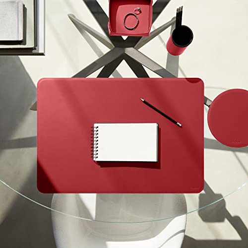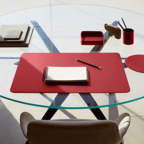 Eglooh - Herms - Sottomano Scrivania Ufficio in Cuoio Rosso Ferrari - cm 90x60 - Cuciture Artigianali e Angoli Arrotondati - Made in Italy