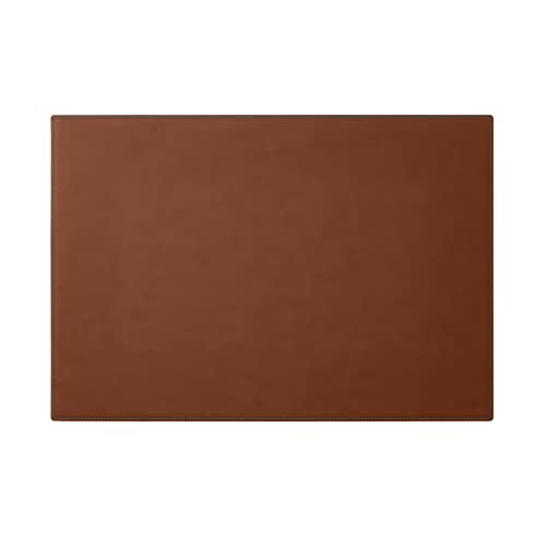 Eglooh - Mercurio Deluxe - Sottomano Scrivania Ufficio in Cuoio Arancione Marrone Naturale - cm 65x45 - Eleganti Cuciture Blu in Contrasto e Fondo Antiscivolo - Made in Italy