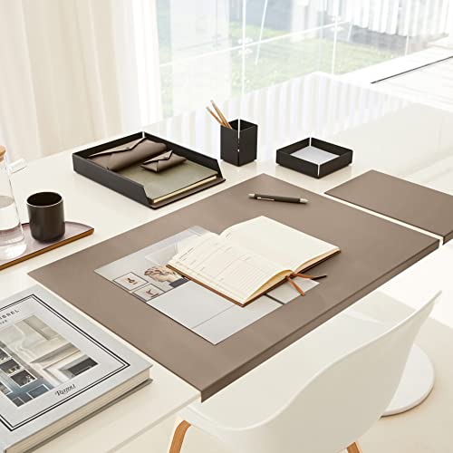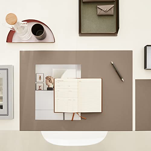 Eglooh - Moire - Set Scrivania Acciaio Nero Opaco - Fondi Interni in Cuoio Grigio Tortora - 4 Pezzi: Svuotatasche, Portapenne, Porta Documenti, Porta Biglietti da Visita - Made in Italy