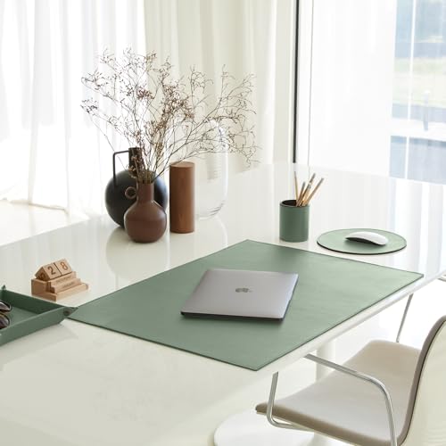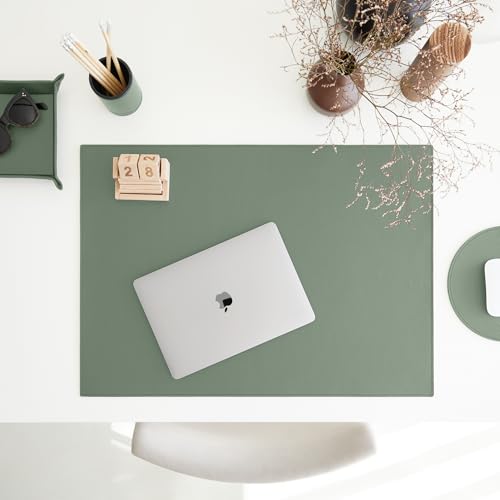 Eglooh - Zefiro - Portapenne da Scrivania Design Rotondo in Vera Pelle Verde Salvia cm 7,8 x 7,8 H.9,5 - Cuciture Artigianali e Struttura Resistente - Made in Italy