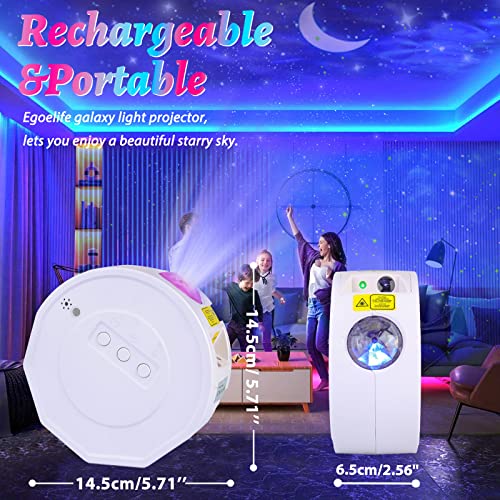 【Rumore bianco e altoparlante Bluetooth】: Egoelife il proiettore Galaxy è dotato di un altoparlante bluetooth incorporato. Le stelle e le nuvole della nebulosa brillano e si muovono al ritmo della musica quando si collega il proiettore di stelle tramite Bluetooth al telefono per riprodurre musica. Inoltre, il proiettore Galaxy è dotato della più recente tecnologia di cancellazione del rumore per creare un'atmosfera musicale di alta qualità per te e la tua famiglia.