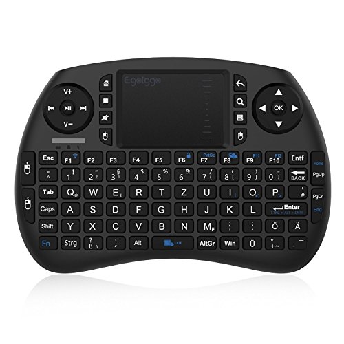 EgoIggo Mini tastiera wireless a 2,4 GHz con mouse, touchpad e batteria ricaricabile per Smart TV, TV Box Android, PC, Mini PC, laptop QWERTZ