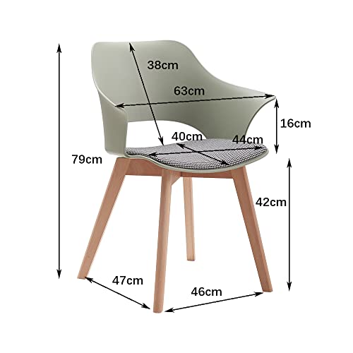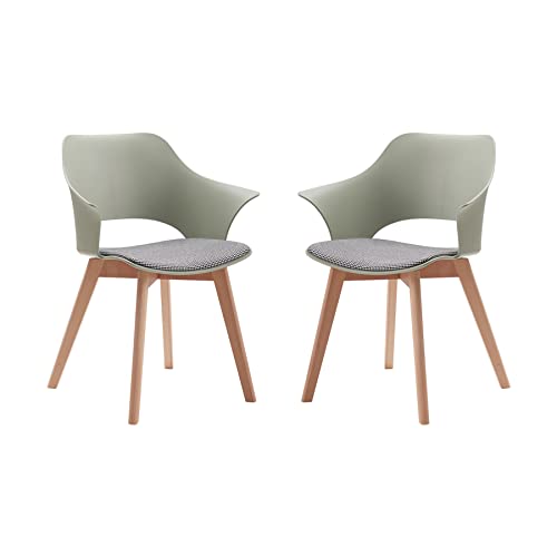 EGOONM Set di 2 Poltrone Moderne per Sala da Pranzo con Gambe in Legno Massello e Cuscino Imbottito in Tessuto, Sedia da Pranzo con Schienale Curvo, Verde