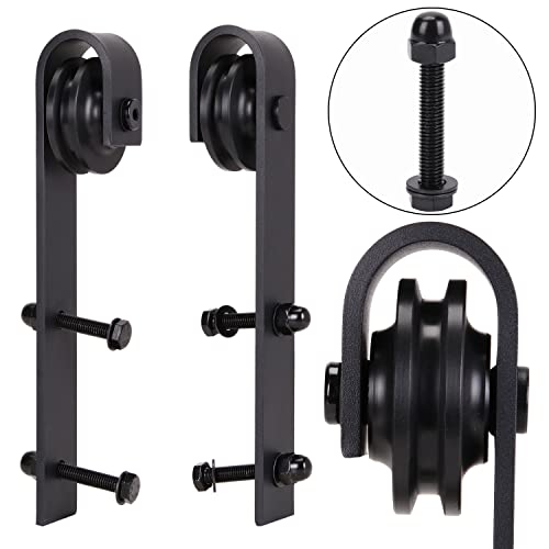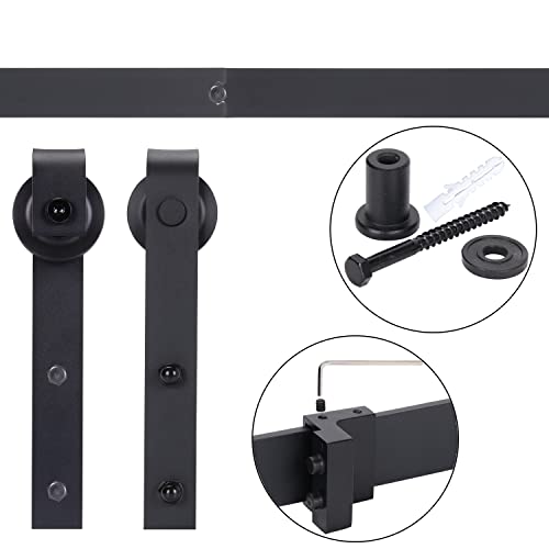 ROBUSTO DUREVOLE: Materiale dei rulli della ferrovia porta scorrevole del fienile: NYLON PREMIUM, Guida della porta scorrevole: acciaio al carbonio con rivestimento a polvere per ridurre l'usura, per mantenere un movimento morbido e silenzioso sulla pista. Portata massima di 150 kg.