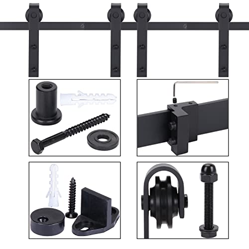 EGTink Binario per Porta Scorrevole Kit, Rustico Porta Scorrevole Kit Accessori con Guida a Pavimento Regolabile Scorrevole per Porte Scorrevoli Doppie