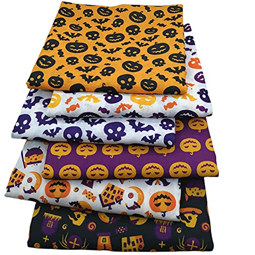Egurs Tessuto di cotone per Halloween, serie di scampoli di stoffa, per Halloween, 6 pezzi, 1# 40 x 50 cm