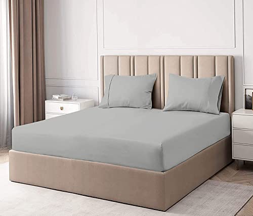 100% Egyptian Cotton Sheet set 600 Thread Count, Hotel Luxury 4 Piece Sheet Set Sateen Weave, 40cm Elasticized Deep Pocket Light gray Solid Double Size