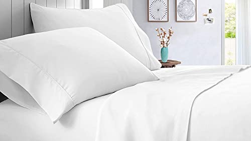 100% Egyptian Cotton Sheet set 600 Thread Count, Hotel Luxury 4 Piece Sheet Set Sateen Weave, 40cm Elasticized Deep Pocket White Solid Super King Size