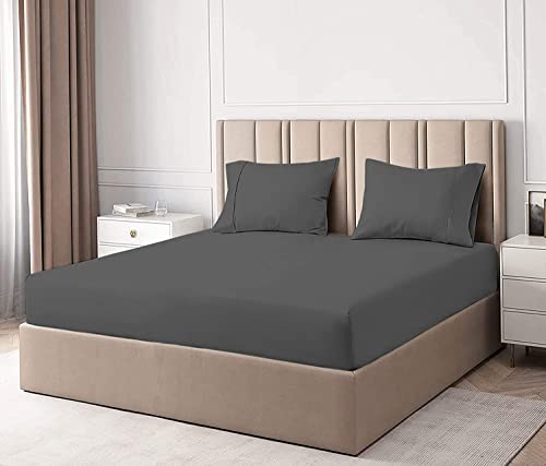 100% Egyptian Cotton Sheet set 600 Thread Count, Hotel Luxury 4 Piece Sheet Set Sateen Weave, 40cm Elasticized Deep Pocket Dark gray Solid Emperor Size