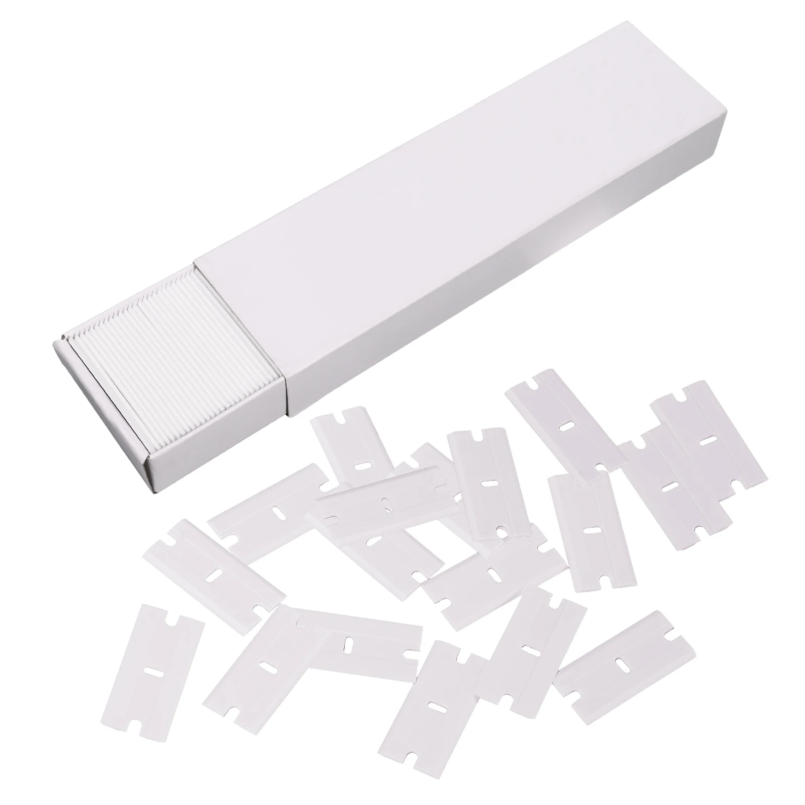 EHDIS 100PCS/Pack Double Edge Plastic Razor Blades Glass Window Scraper Glue Stains Snow Removal Car Household Clenaing Tools