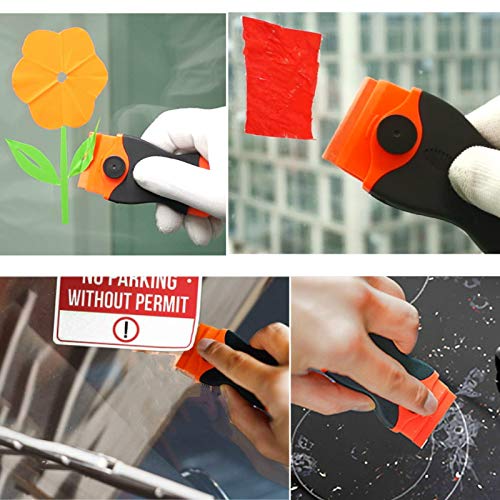 Ehdis Raschietto con 100pcs Lame di Plastica, Razor Blade Spatola, Rimozione Adesivo in plastica, Rimozione della Colla in Vinile, Adesivo di Vetro, Tinta Finestr, Arancia