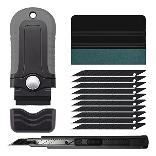 EHDIS Kit Vinile Applicazione Adesivi Auto, Kit Wrapping per Pellicola per Installazione Pellicole Auto Cellulare DIY, Film per mobili, con Taglierino Cutter(10 Lame), Spatole e Raschietto