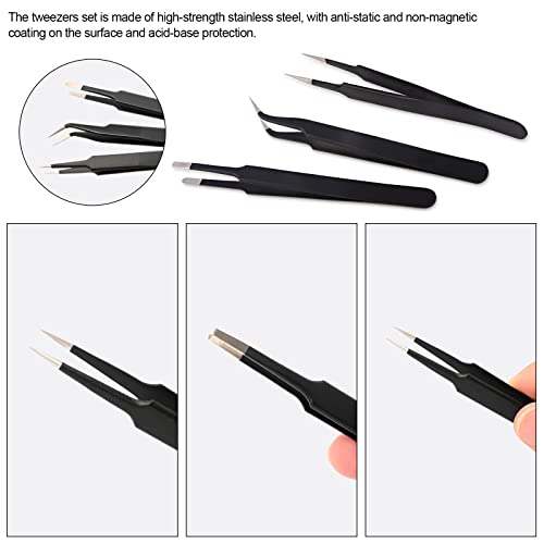 Alta qualità pinzette di precisione in acciaio inox ESD che sono anti-statico, anti-bastone, con un rivestimento verniciatura anticorrosione aiuta a proteggere l'elettronica da danni statici, e rendono l'installazione facile film.