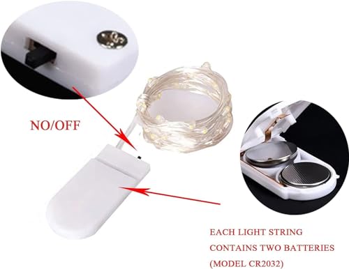 EHIOG 12 pezzi lucine led decorative a batteria, 2M 20 LED Filo Luci Natale Led,Fairy Lights, per Camere da Letto Giardino Casa Feste Natale Matrimonio (Bianco Caldo)