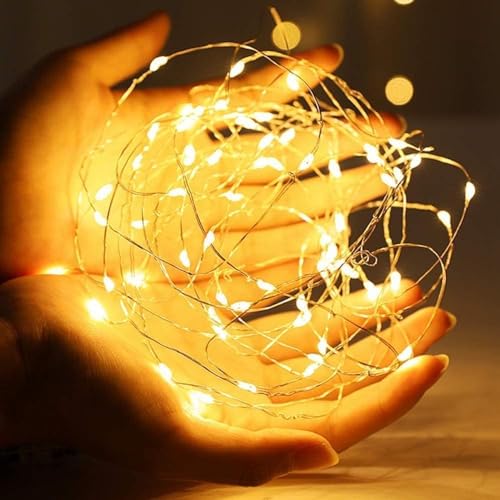 ⭐【Fai Da Te Quello Che Ti Piace】Gli fairy lights sono realizzati in filo d'argento di alta qualità con buona morbidezza e tenacità. Puoi piegare la catena secondo necessità per contenere piante, insegne, ringhiere, mobili, ecc. La catena di luci crea un'atmosfera calda, romantica e rilassante.