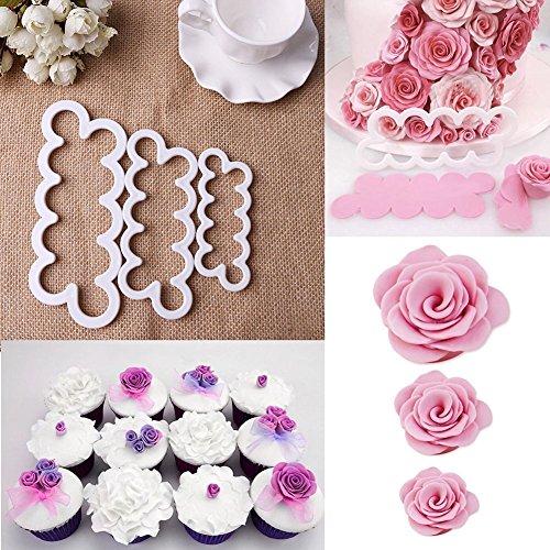 EHizon 3 pcs Rose Cookie Fondant Molds Fondant Cutters and Molds Silicone Molds