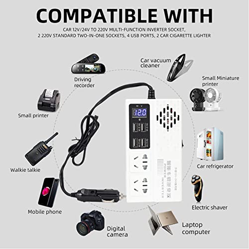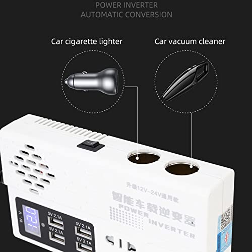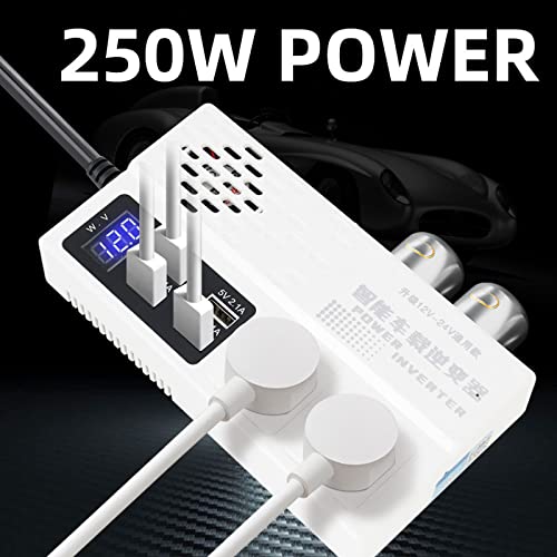 EHJDSTK 250W Inverter da Auto 12V/24V a 220V con 4 Porte USB 2.1 A, 2 Prese AC,Invertitore di Potenza per Carica Phone Pad Tablet [ con Display LED, Accendisigari] (Bianco)