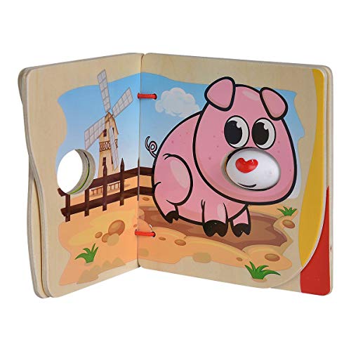Eichhorn- Libro di Immagini Fattoria con 8 Motivi Animali, 4 Pagine, in Legno Certificato FSC 100%, 12 x 12 cm, per Bambini a Partire dai 6 Mesi, 100005416