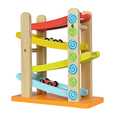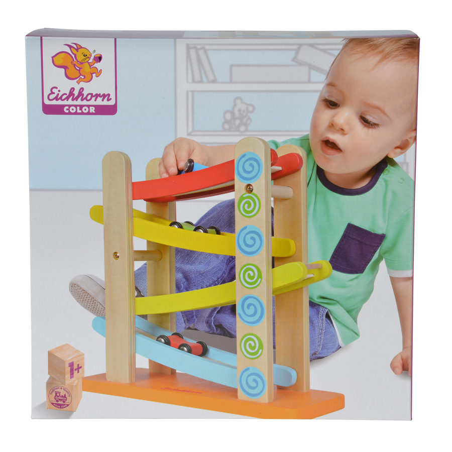 La pista con i quattro piani offre ore e ore di divertimento! Le auto scivolano a zig zag dal piano più alto fino a quello più basso. Adatto a bambini a partire da 1 anno Dettagli: Incluse 3 macchinine 4 pezzi Dimensioni: 25 x 24cm Materiale: FSC® 100 % legno di betulla, compensato Età: a partire da 12 mesi