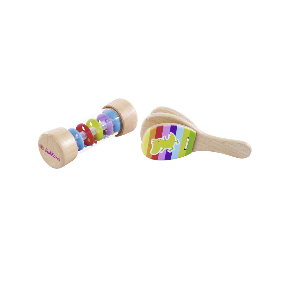Dettagli del prodotto: Età: da 24 mesi Eichhorn Sonaglio del set musicale Eichhorn: con il set musicale, composto da una nacchera e un piccolo pluviometro, i bambini diventano attivi musicalmente. Le palline all'interno del pluviometro producono un suono di spruzzi quando viene girato. I bambini possono sperimentare l'inclinazione e quindi influenzare il volume e la velocità delle palline. Entrambi gli strumenti sono dipinti con colori vivaci e producono un grande rumore Dimensioni e peso: Peso: 0,22 kg Materiale e cura: Materiale: faggio, compensato di tiglio Avvertenze e istruzioni di sicurezza: Attenzione: non adatto a bambini di età inferiore a 24 mesi.
