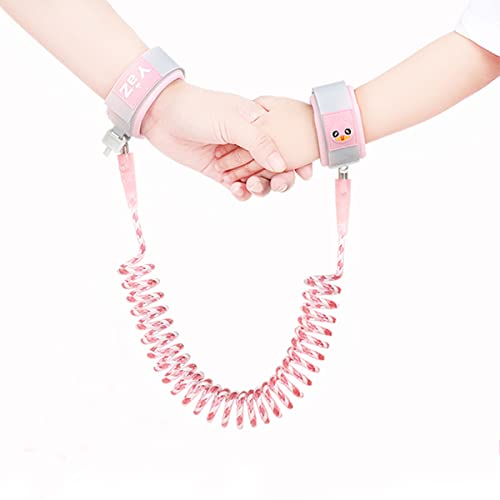 Eidyer bambini Anti-polso perso cinture di sicurezza, regolabile 1.5M/4.92ft Bambino Redini di sicurezza Guinzaglio Cinghia a mano Corda elastica Corda fluorescente e blocco di sicurezza (rosa)