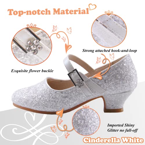 EIGHT KM Scarpe da ragazza con tacco alto Mary Jane, principessa per feste di nozze, pompe scintillanti per comunione, Cenerentola bianco., 36 2/3 EU
