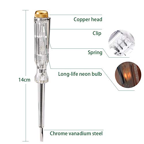 Eightwood Tester di Rete Cacciavite Tester Elettrico Cacciavite Tester Tool Neon 220V Tester di tensione con 100-500 Tester di tensione Cacciavite Neon Lampadina Tester elettrico Sonda penna