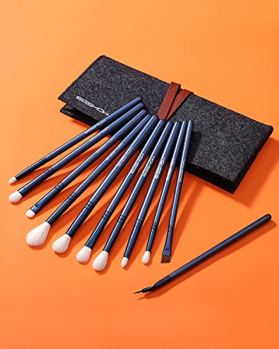 EIGSHOW Pennello per il trucco 11 pezzi, set di pennelli per ombretto essenziale, pennello per ombretto vegano incl. Pennello per miscelare, pennello per dettagli, pennello per sopracciglia (Blu)