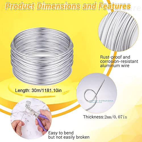 EIKEJI Filo Alluminio 2 mm x 30 m, Filo di Ferro Modellabile, Filo Alluminio per Bigiotteria, Metallico per Fiori,Filo Metallico Colore Argento,Adatto per Design Gioiello, Abbellimenti, Decorazioni