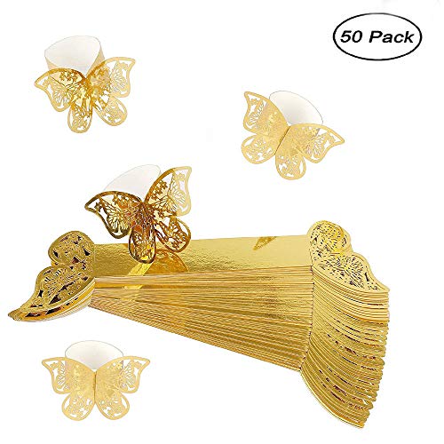 EIKLNN 50 Pezzi Portatovagliolo Farfalla, Tovagliolo di Farfalla Porta Anello,Anello Carta Banchetto di Nozze, per Matrimonio Battesimo Comunione Nascita Laurea Compleanno Natale Festa