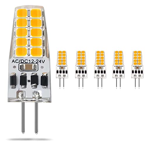 EIMOPE G4 LED Lampadina Dimmerabile, 3W Equivalenti a 30W Lampada Alogena, Bianco Freddo 6000K Lampade LED G4 300LM,AC/DC 12-24V 360 Grado, no sfarfallio, 5 pezzi
