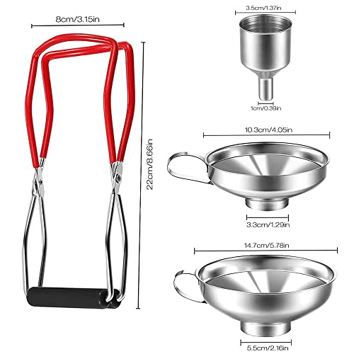 Pratico set: set imbuto per conserve dotato di impugnatura ergonomica, le pinze aiutano a sollevare e inserire il vetro caldo e proteggono le dita dalle scottature.
