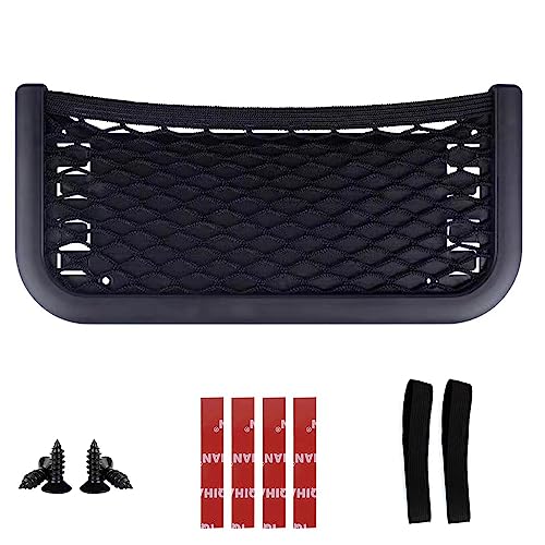 EINESIN Rete di stoccaggio auto 3 in 1, rete di supporto, vano da incollare o avvitare per veicoli, barche, camper, roulotte, armadi e interni, fissaggio con cinghie elastiche, universale.