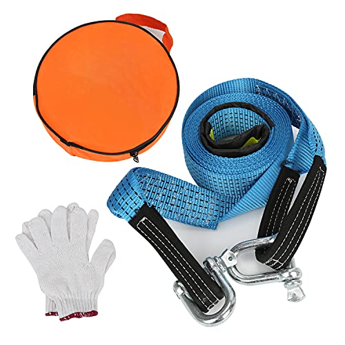 EINFEBEN Corda da traino blu, 5 cm x 5 m, portata fino a 8 tonnellate, con 2 moschettoni, borsa inclusa