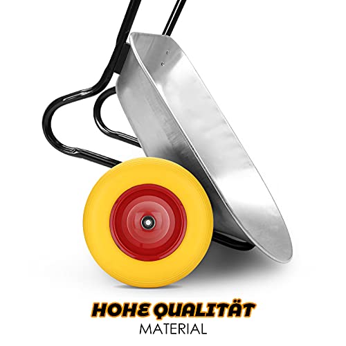 Sicuro e affidabile: la ruota per carriola con l'asse in dotazione è possibile montare immediatamente la ruota sulla carriola e iniziare. Lo pneumatico ha una larghezza extra per ridurre il rischio di ribaltamento di 95 mm. Che si tratti di chiodi, vetro, spine o schegge, questa ruota in gomma piena non vi deluderà.