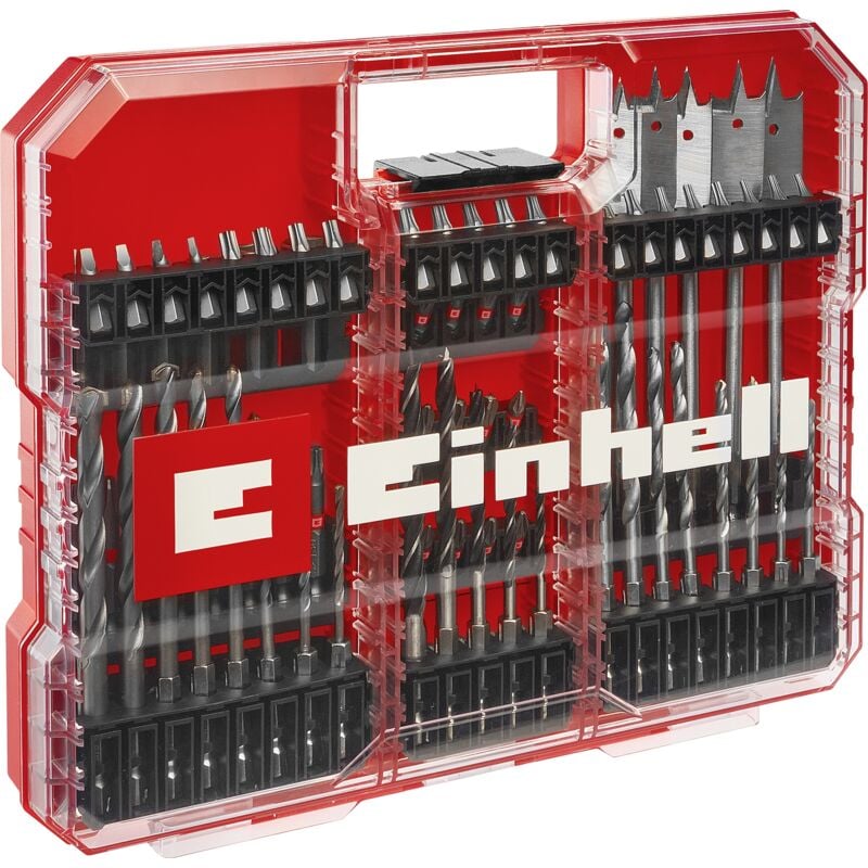 Set Einhell XL da 95 pezzi Il set Einhell XL da 95 pezzi è un multitalento che offre un'ampia selezione di punte, punte da trapano e bussole adatte a diversi materiali e applicazioni.< p > Set di punte per muratura Il set di punte per muratura contiene 49 punte da 25 mm con gambo C 6,3 e PH0 / 2x PH1 / 4x PH2 / 2x PH3 / 3x PZ1 / 4x PZ2 / 2x PZ3 / 2x H2 / H2,5 / H3 / H4 / H5 / H6 / 3x T10 / 3x T15 / 3x T20 / 4x T25 / 2x T27 / 2x T30 / SL4 / SL5 / SL6 / R0 / R1 / R2 / R3, nonché otto 50 mm punte con gambo E 6.3 e PH2 / PH3 / PZ2 / PZ3 / T15 / T20 / T25 / T30. Sono realizzati in robusto acciaio S2 e si caratterizzano per la loro durata. Set di punte per metallo Inoltre, il set di punte comprende otto punte per metallo realizzate in HSS 4241 di alta qualità. qualità acciaio nei diametri 2x 3 / 2x 4 / 2x 5 / 2x 6 mm. Le punte per metallo lucidato argento con gambo E 6,3 consentono lavori di foratura efficienti. Set punte per legno Il set Einhell comprende anche otto punte per legno in