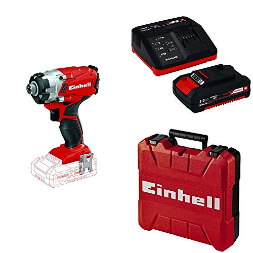 Einhell 4510034 Li- Solo Avvitatore a Impulsi a Batteria, 18 V, Rosso + Power-X-Change Starter Kit(Batteria e Caricabatteria) + Valigetta Universale