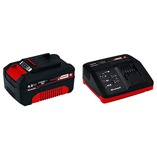 Einhell 4511396 Batteria Ricaricabile Agli Ioni di Litio, 4000 Mah, 18 V, Nero, Rosso, 4,0 Ah & 45.120.11 Power X Caricatore rapido per batterie 1,5 Ah, 3,0 Ah e 5,2 Ah
