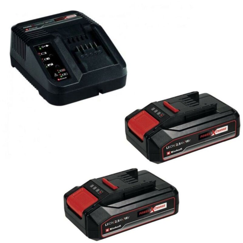 Kit da 2 Batterie e carica batterie universale Einhell da 2.5Ah - 18V di tipo Li-ion, che assicura assenza di autoscariche, compatibile con prodotti Einehell della linea Power X Change. SKU ENHLL/3900000476 Manufacturer Einhell