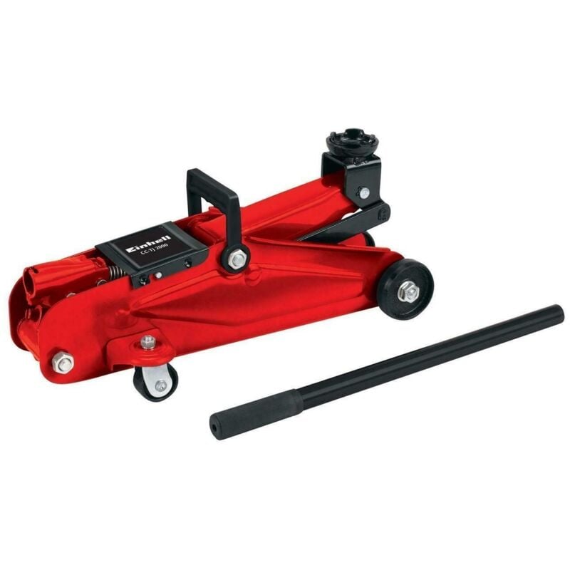 Cricchetto idraulico con 2 tonnellate di potenza di sollevamento. Con un''altezza di sollevamento fino a 33 cm. La sella di supporto e l''asta di sollevamento garantiscono un sollevamento sicuro e più facile del carico. I danni da sovraccarico vengono evitati in modo affidabile grazie alla valvola di sicurezza integrata. Le due ruote con cuscinetti a sfera consentono una facile manovrabilità e con la pratica maniglia di trasporto è facile da trasportare.