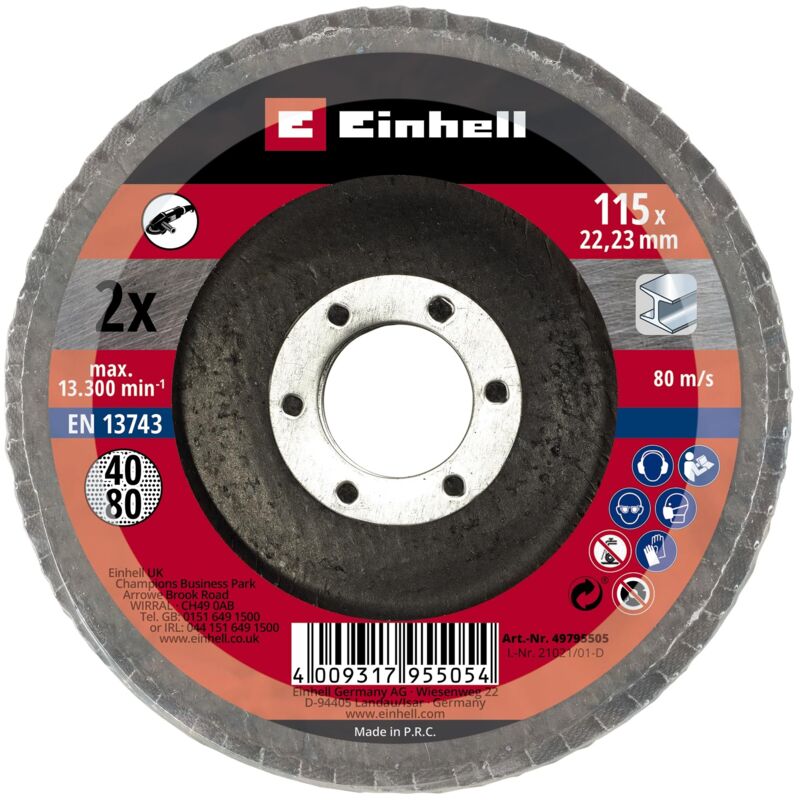 La rondella ha un diametro di 115 mm e un foro di 22 mm. Nel set sono inclusi due dischi abrasivi lamellari: 1 grana P40 e 1 grana P80. Grazie all'elevato numero di lamelle può essere raggiunto un taglio ottimale, ad esempio per la levigatura di saldature, la rimozione della ruggine di metallo, la levigatura di vernici e vernici, la levigatura su metallo. Adatto per tutte le smerigliatrici angolari standard con una velocità perimetrale di 80 m/s. Da utilizzare con massimo 12 250 min^-1 (giri al minuto).