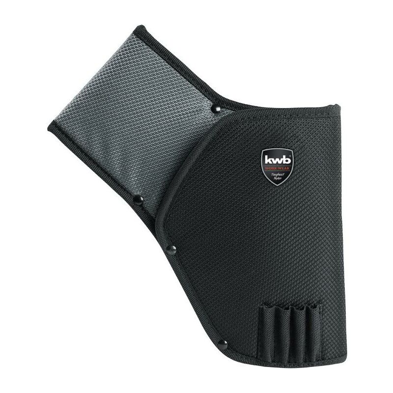 PORTA AVVITATORE A BATTERIA Porta avvitatore a batteria di nylon 1680D in nero/argento, qualità particolarmente robusta, cucitura doppia rifinita con filo argentato, sul lato esterno 4 occhielli elastici per trapano, per destri, adatto per tutti gli avvitatori a batteria di uso commerciale, incl. etichetta kwb WORK WEAR, per cinture fino a 7 cm di larghezza. CODICE Lunghezza x larghezza 907510 210 x 150 x 100 mm