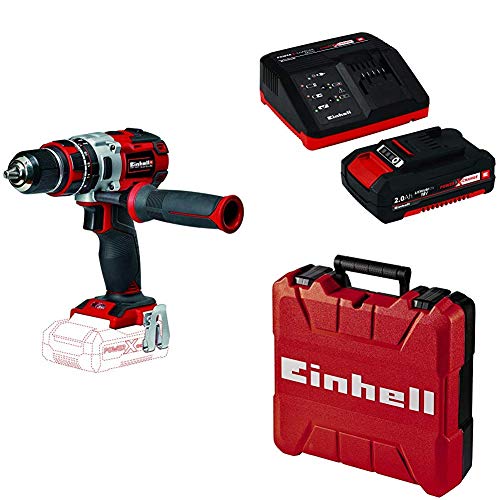 Einhell TE-CD 18 Li-i Brushless - solo Trapano a Percussione a Batteria, 1800 RPM, 18 V, Rosso + Power-X-Change Starter Kit(Batteria e Caricabatteria) + Valigetta Universale