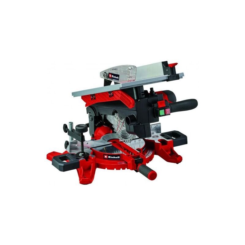 Doppia funzione (troncatrice/sega circolare), piano girevole troncatrice regolabile (±45°), piano sega circolare regolabile in altezza (mm. 0-40), testa troncatrice inclinabile verso sinistra (0°-45°), laser per tagli precisi con linea di taglio a seguire, guida parallela e obliqua regolabile (±30°), estensioni piano laterali su entrambi i lati dispositivo di bloccaggio integrato, attacco per aspirazione. In dotazione: 1 lama per legno HM 36 denti.